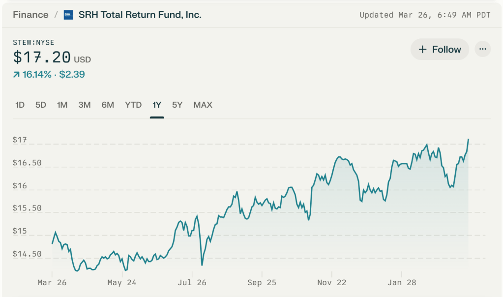 SRH Total Return Fund (STEW) operates like a “best-of” portfolio managed by financial professionals with direct ties to Berkshire Hathaway. Here’s what stands out: