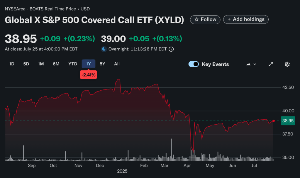 What it Pays (Yield): As of July 2025, XYLD has paid out about 13.4% of its value in cash payments over the past year.