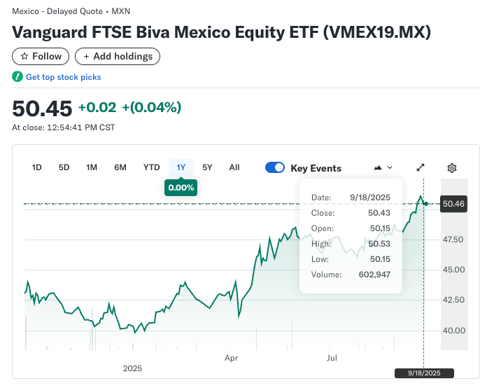 - Vanguard FTSE BIVA Mexico Equity ETF (VMEX19.MX)